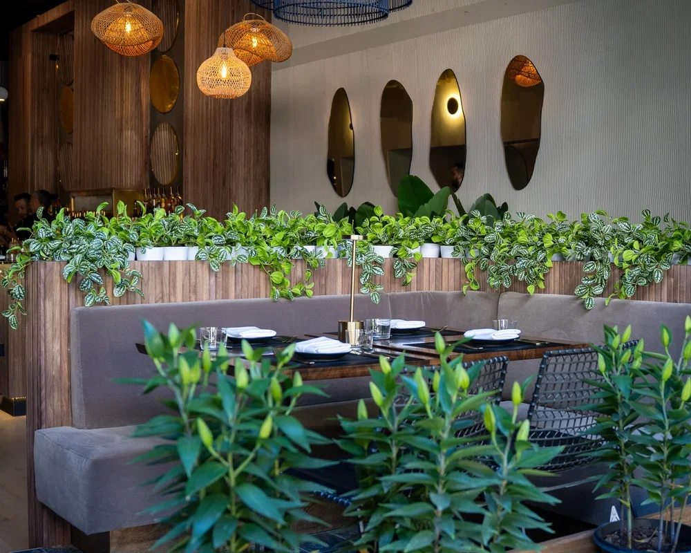 The layout guides guests through dynamic, layered spaces, balancing intimate dining areas with open communal zones. Walls feature tactile finishes and carefully chosen materials that enhance texture and rhythm throughout the space. Subtle details and spatial composition create a harmonious flow that supports both comfort and engagement.